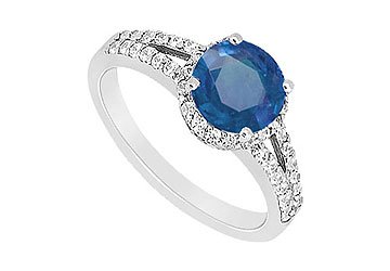 +++ Black Friday Sapphire and Diamond Engagement Ring : 14K White Gold - 1.00 CT TGW Size 7 Deals